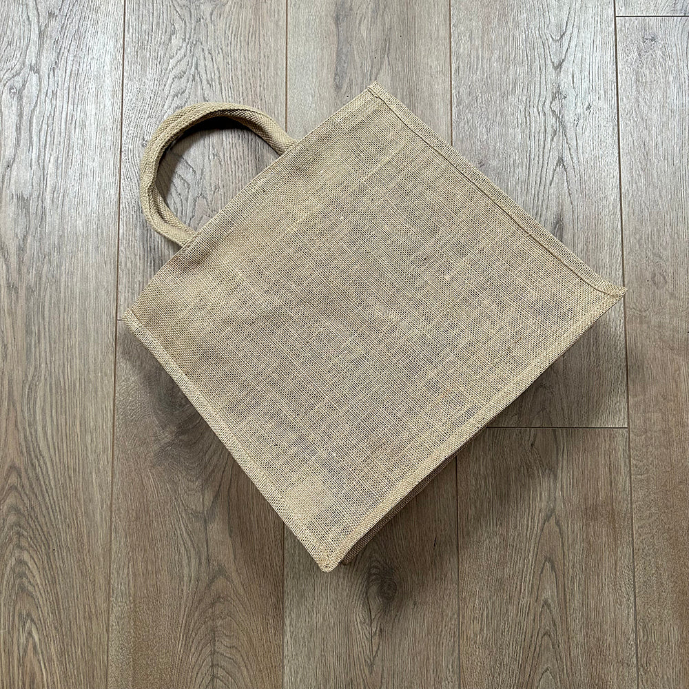 Go green with our Eco-conscious Reusable Hessian Carrier Bags, designed for the environmentally savvy shopper. These bags are 100% plastic-free, contributing to your efforts to protect our planet and reduce plastic waste.