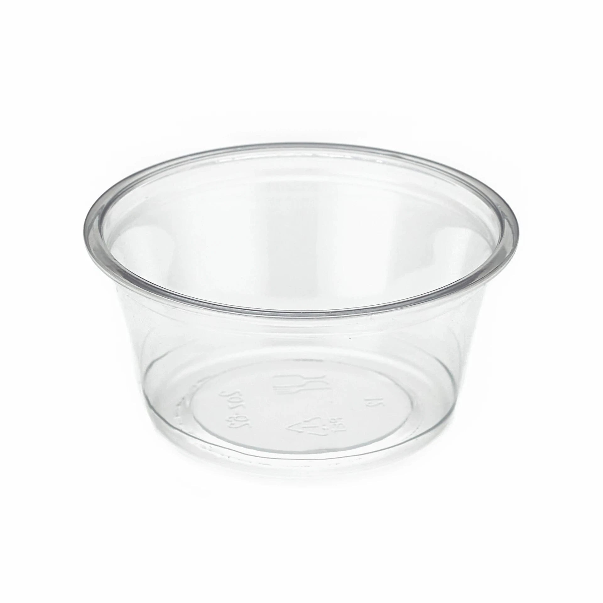 Clear PET Portion Pot - perfect for sauces, dips, and dressings. Made from recyclable clear PET. This pot provides a sustainable option while keeping your condiments fresh and easy to dispense.